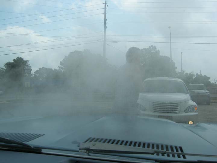 After Jeff and I left Cordele, we thought all of our problems were behind us, but alas we were incorrect. We got as far as Macon when the engine overheated again in a spectacular display of hissing steam, completely obscuring our view out the front window.