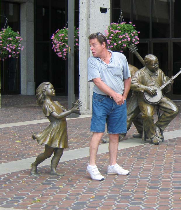 However, when one is hanging out with Jeff, it doesn’t stay serious for long. Right across the street from the basilica is the Civic Center, where he was accosted by a statue.