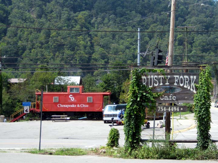 This is the main intersection in Elkhorn, at Route 80 (also known as Patty Loveless Drive. She apparently grew up here, before moving on to seek fortune and fame in the recording industry. She is also apparently related to Loretta Lynn.).