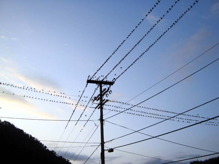 We saw thousands of birds on these wires. The camera couldn’t even cover the whole scene without being too far away to tell that they were coated with birds.