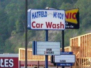 We saw the Hatfield McCoy Car Wash, ironically enough, while listening to a debate on the radio about the “Ground Zero Mosque.” Can’t we all just get along? (The Hatfield/McCoy feud happened near here.)