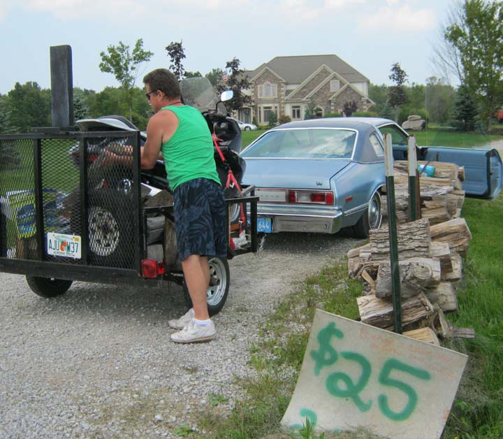 We picked up some firewood, for a great price, from someone’s front yard. They were selling it on the honor system. Put your money in the coffee can and load it on up. Gotta love the Midwest.
