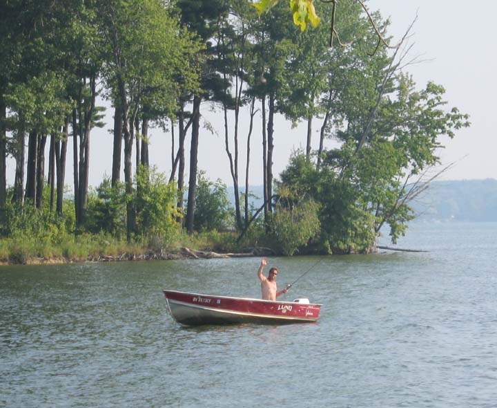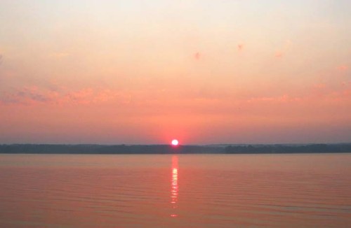 This morning, Jeff got up before dawn to rent a fishing boat, so we had coffee and watched the sun rise over the lake. It was all pinks and baby blues and lingered a looooong time.