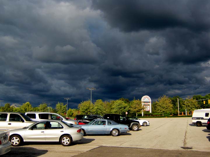 Maybe they’re all making so much noise in an effort to keep warm. It’s so incredibly cold this weekend that Jeff and I had to go out into the world to find an electric blanket for the tent. After weeks of daytime temps in the 90’s (and, of course, I didn’t pack for cold weather because it’s summer and it was close to 100 in Florida when we left) it has been raining hard and dipping down into the 40’s overnight. Eeek! Check out the sky! Those look like snow clouds, to me.