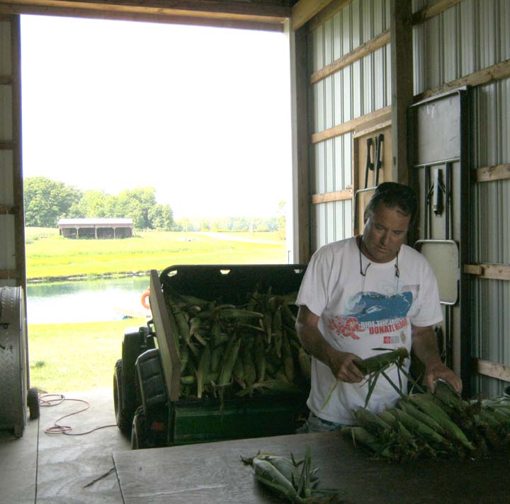 While we were out and about, we finally found the farm we have been looking for all week. Last year when we were up here, we found this place that sells the most incredible fresh produce but we haven’t been able to find it this year because we didn’t pay attention last year to its exact location. For a week we’ve been driving around, looking for a well-tended, red barn that is open on both sides, through which you can see their cornfields. Well, we just happened to find it down a side road that we never thought to try.
