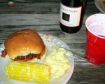 We picked up some exquisite corn on the cob, softball-sized succulent tomatoes and some fresh, ready to eat peaches that drip with juice when you bite into them. Jeff, the master camp chef, made an incredible meal of “chip chop ham” (something you can easily find at any grocery store deli in northeast Ohio, but nowhere else) with Manwich Bold sauce on a toasted bun, potato salad, and a plastic cup of “Three Buck Chuck” wine from Trader Joe’s.