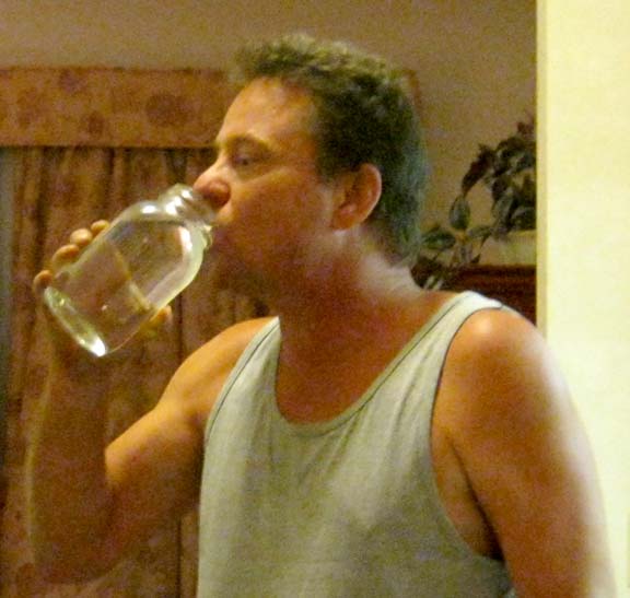 I didn’t mention this at the time, because I didn’t want to attract the attention of any revenuers out there, but Jeff picked up a jug of moonshine along the way. I don’t know if it’s illegal or not, but some things are best to not know. Either way, this stuff will KICK. YOUR. ASS. And it’s gone now, so there is no evidence of any wrongdoing. In fact, these pictures are of Jeff drinking water and acting as if he was having his ass kicked by some powerful hooch. 😉