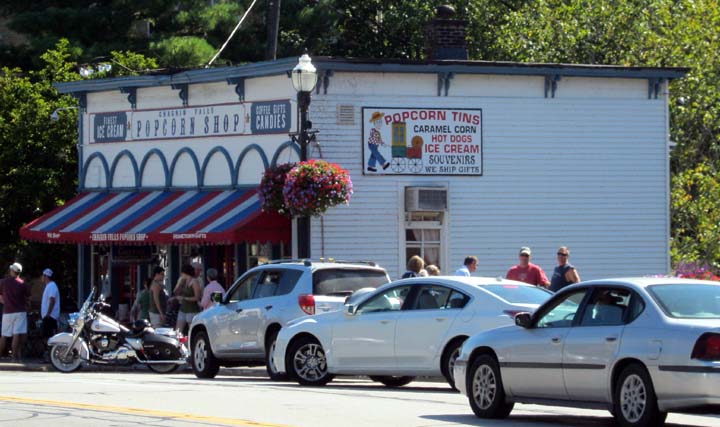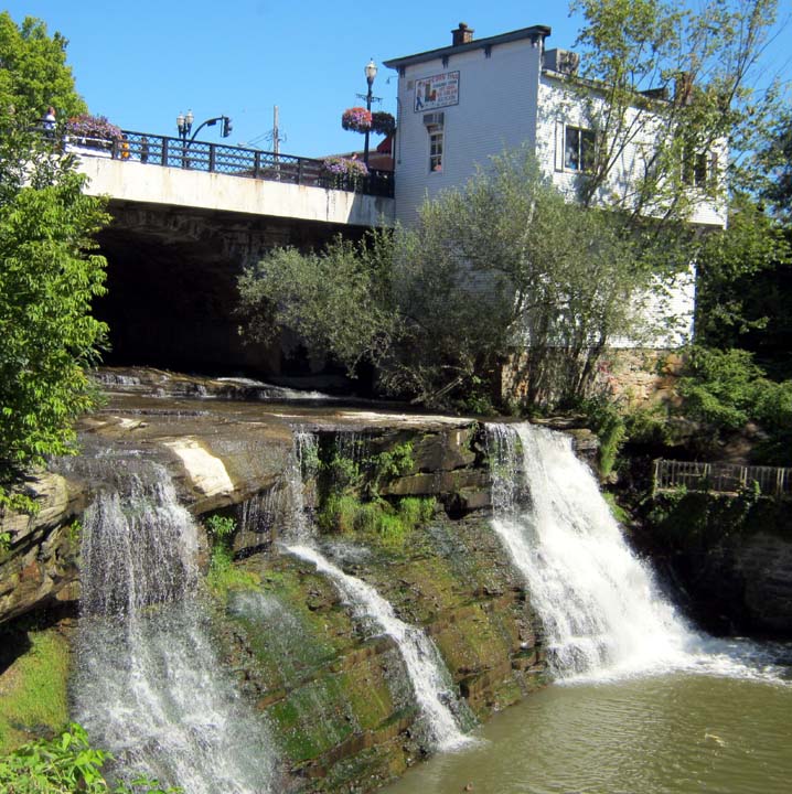 Those are the Falls, obviously, and the building that seems to be hanging over the waterfall is the back of the Popcorn Shop, a Chagrin Falls tradition.