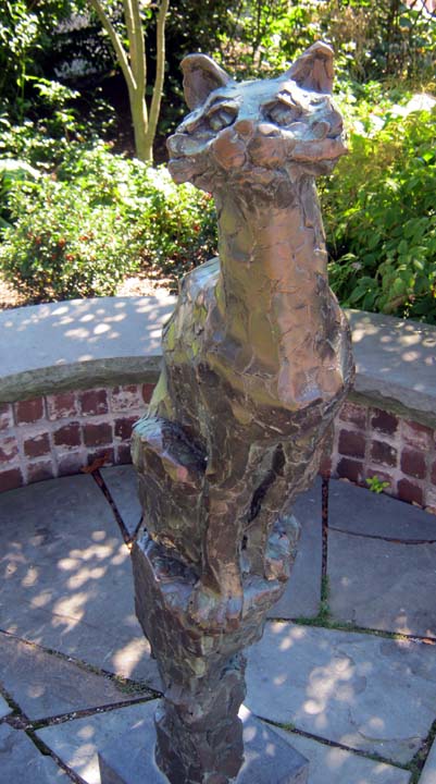 His sandwiches are pretty doggone yummy, though. Across the street, you’ll find an adorable little park, with this adorable statue of a cat gazing up at a nearby tree, which is presumably the home for some doggone yummy birds.