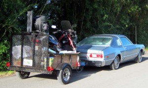 He refuses to believe that anyone would take things from a trailer–left uncovered and parked overnight in public parking lot, practically marked with a sign that says “We’re sleeping … come take our unprotected belongings” –but come on … let’s not be naïve.