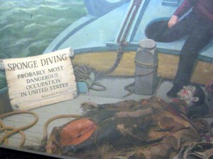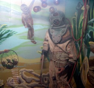Curtis, the display doesn’t actually say why sponge diving is so dangerous, it just says that it is with this graphic and gruesome diorama. However, because I saw the film, I know that it’s because of the possibility of equipment failure and/or dying from the bends.