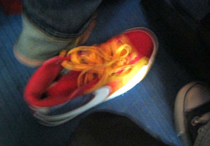 It was super cold yesterday. One girl even changed out of her flip flops into her neato shoes on the bus. I had to take a pic of her shoe, cuz it’s so cute. Sorry it’s so blurry.