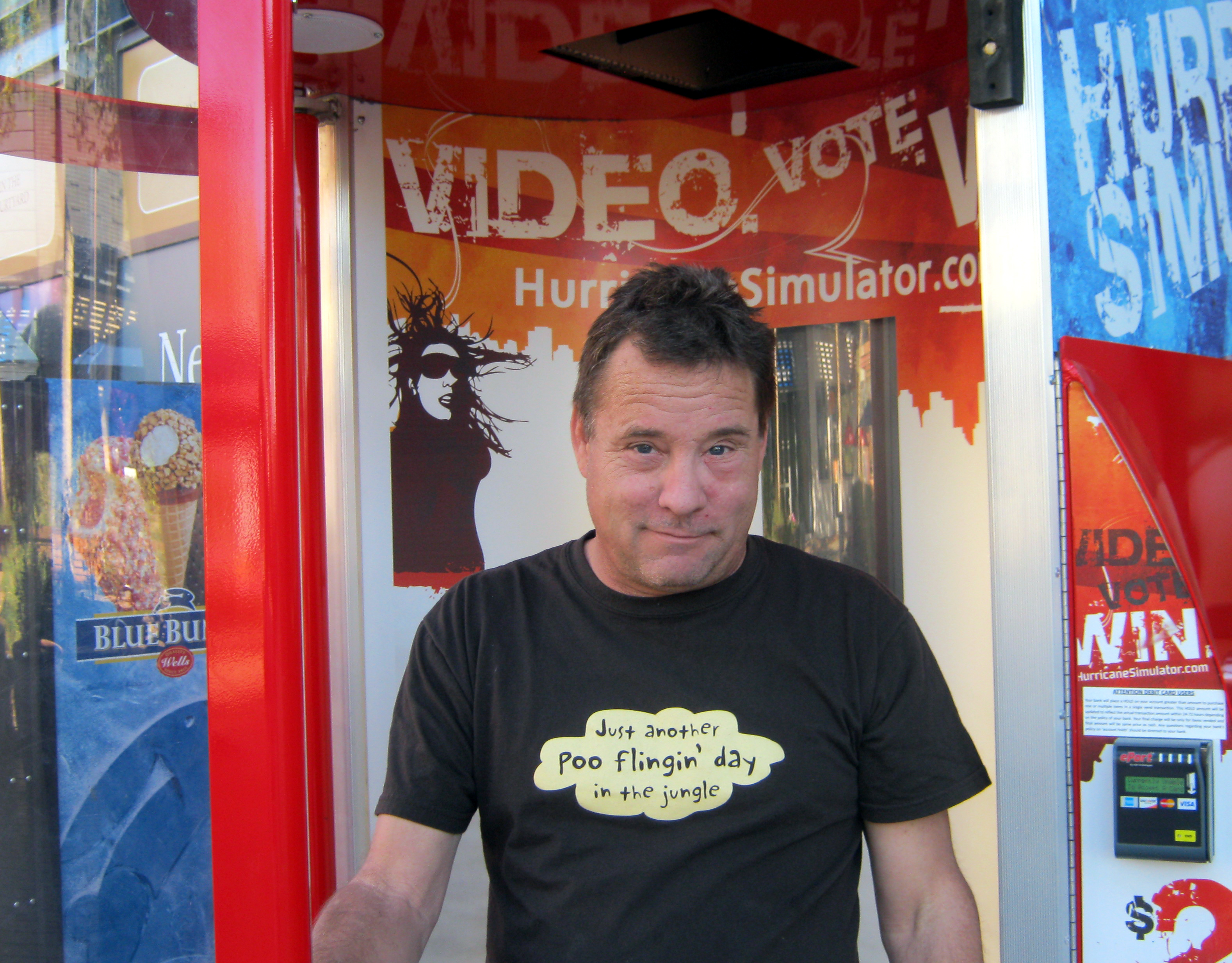 Jeff and I were recently wandering the East Valley (east of Phoenix, that is) and found a Hurricane Simulator at a local mall. Well, what man in his right mind (or even Jeff!) could possibly pass up an opportunity to waste two dollars on a thing like that?