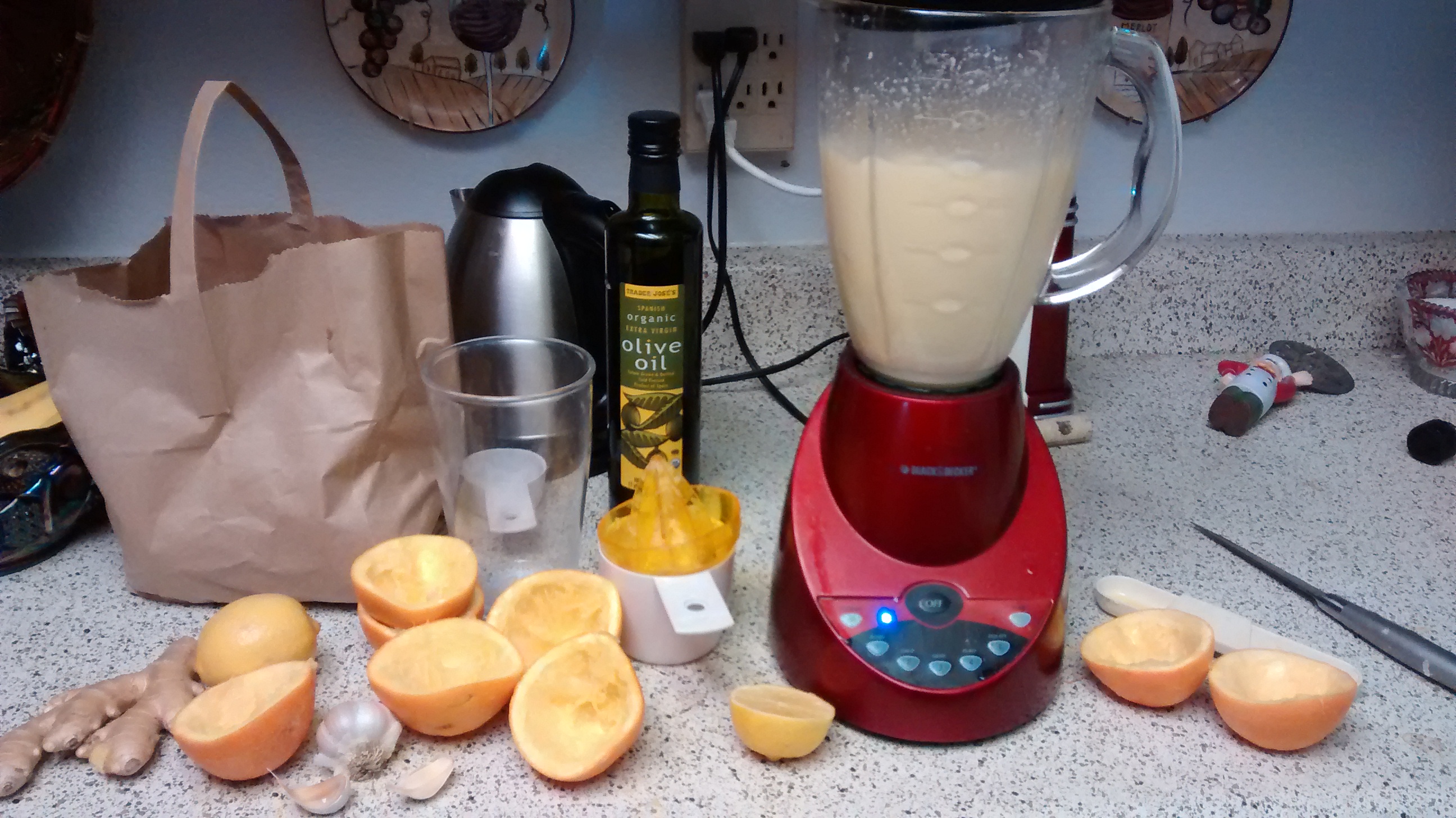I went to Sprouts (their produce is nicely priced) and bought a bag of oranges so I can make the garlic-free “Morning Cocktails” again. They