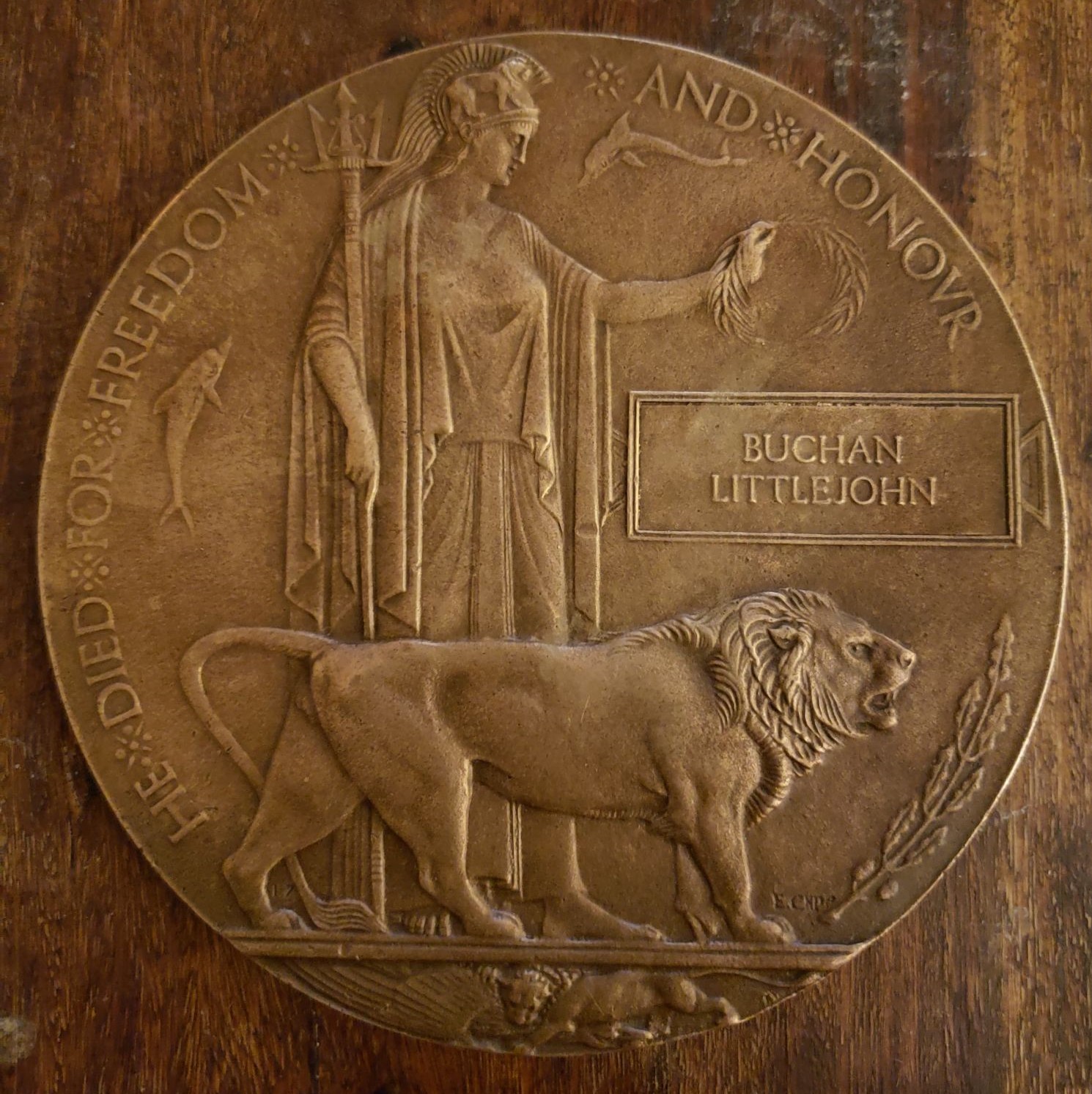 What they had found was a Next of Kin Memorial Plaque (also known as a Dead Man’s Penny) with Buchan’s name on it. While this made me tingle with excitement, I had no idea how it could have gotten all the way to the far west coast of the United States.