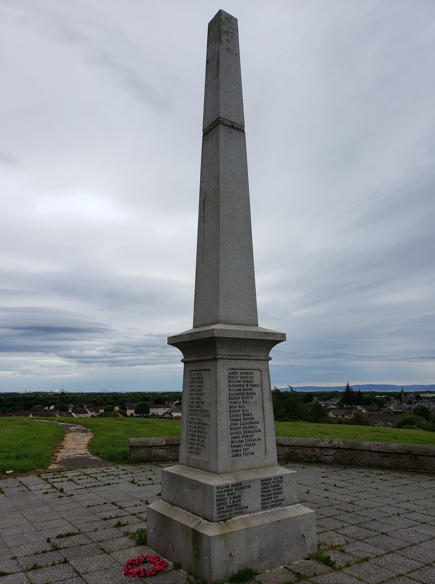 When my husband, brother and I visited Scotland last summer, we made a special point of digging up as much information on Buchan as we could find. As there was no local grave to visit, we climbed a steep hill in Dreghorn to find this monument with Buchan’s name on it. He’s listed here with other young men from the area who were killed in the “Great War”. He was only 22.