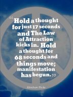 Am I beating this into the ground, or is all of this second guessing helpful because it forces me to focus on what I really want? Abraham says to hold a thought for 17 seconds and the Law of Attraction kicks in. Well, I have certainly done at least that.